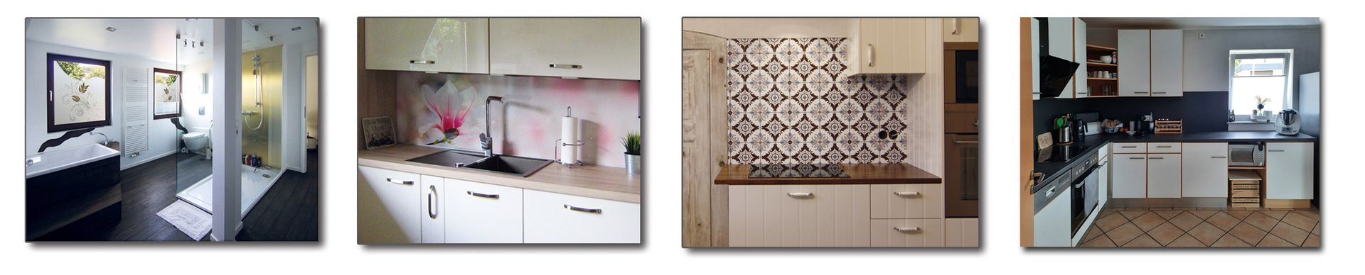 Die formstabilen 3-Schichtverbundplatten mit Wunschmotiv sind bestens geeignet um leichte Unebenheiten des Untergrundes auszugleichen. Die Design-Platten können auf vorhandene Fliesen kaschiert werden. Das ergibt große, fugenfreie Flächen die sich einfach und schnell pflegen lassen.